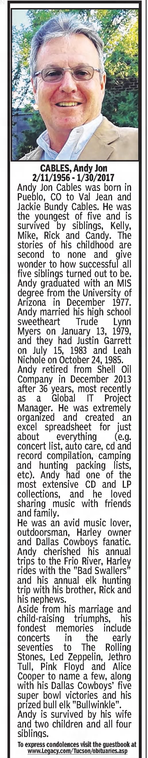 CABLES, Andy Jon 2/11/1956 - 1/30/2017 (tucson.com)